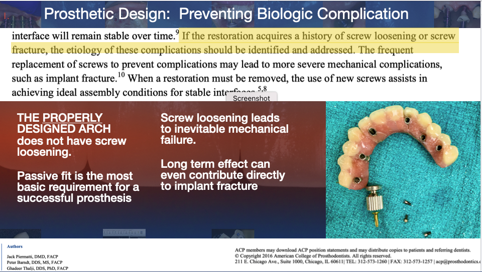 Exercise care to limit torquing to 15N-cm no more than 5 times. After 4-5x of torquing during fabrication the restorative screw will have undergone enough strain elongation to not perform effectively moving forward in maintaining preload in subsequent experiences